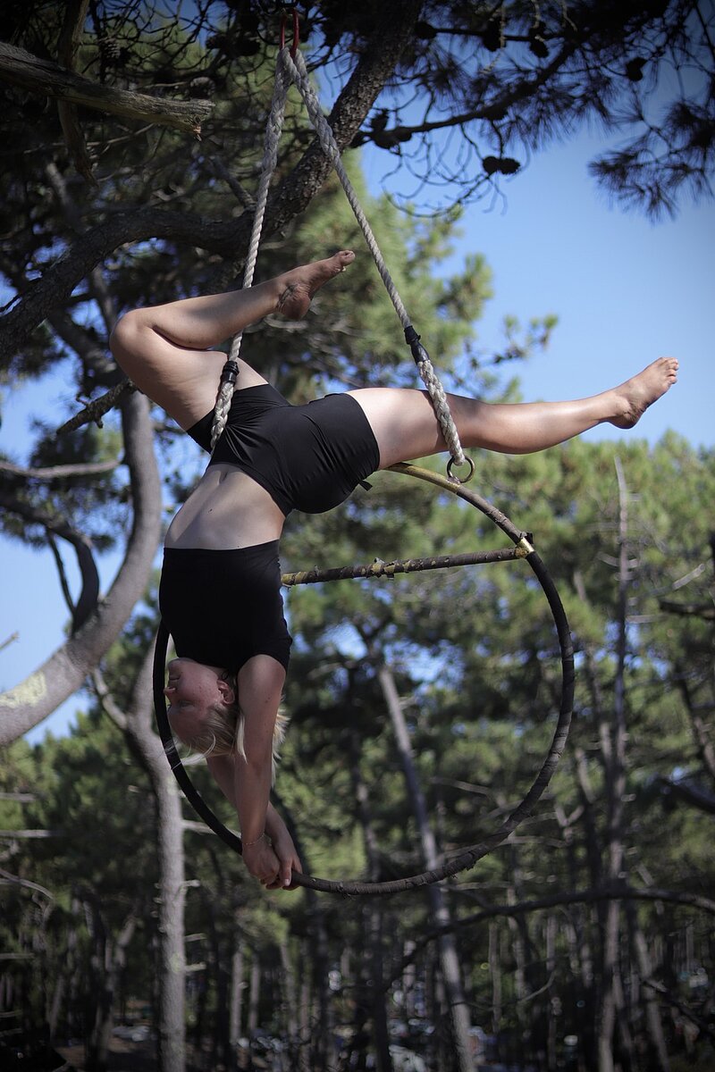 Über Trapez und Tuch entdeckte sie schließlich den Aerial Hoop, der seitdem ihre große Leidenschaft ist.